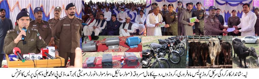 لیہ پولیس (سرکل کروڑ) کی جرائم پیشہ عناصر کے خلاف کارکردگی ماہ فروری ،ڈی پی او لیہ محمد علی وسیم کی پریس کانفرنس ،01 کروڑ 72 لاکھ روپے سے زائد کی ریکوری