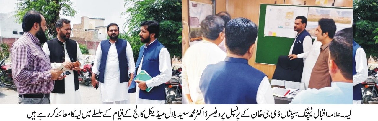 لیہ۔(صبح پاکستان )سپیشلائزڈ ہیلتھ کیئر اینڈ میڈیکل ایجوکیشن ڈیپارٹمنٹ پنجاب کی جانب سے علامہ اقبال ٹیچنگ ہسپتال ڈیرہ غازی خان کے پرنسپلا پروفیسر ڈاکٹر محمد سعید بلال کو لیہ میں نئے میڈیکل کالج کے قیام کے لیے پروجیکٹ ڈائریکٹر مقرر کر دیا گیا ہے۔لیہ میڈیکل کالج کے قیام کے سلسلے میں پروفیسر ڈاکٹر محمد سعید بلال نے معروف ماہر صحت ڈاکٹر رضوان کے ہمراہ لیہ کا دورہ کیا۔انہوں نے لیہ میں متوقع میڈیکل کالج کی جگہ، دستیاب سہولیات، بلڈنگ انفراسٹرکچر، اور ہیلتھ ڈیپارٹمنٹ کے دیگر منصوبہ جات کا جائزہ لیا۔اس موقع پرایکسین بلڈنگ سجاد حسین ،سی ای او صحت ڈاکٹرشاہدریاض،ڈپٹی ڈائریکٹرڈویلپمنٹ اسحاق کھرانی،ایم ایس ڈی ایچ کیوڈاکٹرمحی الدین ودیگر ہمراہ تھے۔اس موقع پرانہیں میڈیکل کالج کی عمارت، دستیاب زمین، اور دیگر انتظامی و تکنیکی پہلوو¿ں پر بریفنگ دی گئی۔ اس موقع پر پروفیسر ڈاکٹر محمد سعید بلال نے کہا کہ میڈیکل کالج لیہ جنوبی پنجاب کے عوام کے لیے ایک انقلابی قدم ہوگا جو صحت اور تعلیم دونوں کے شعبوں میں بہتری کا باعث بنے گامیڈیکل کالج کے قیام سے علاقہ کے طلباءکو اپنے ہی ضلع میں میڈیکل تعلیم حاصل کرنے کا موقع مل سکے اور صحت کی سہولیات میں بھی نمایاں بہتری آئے گی۔