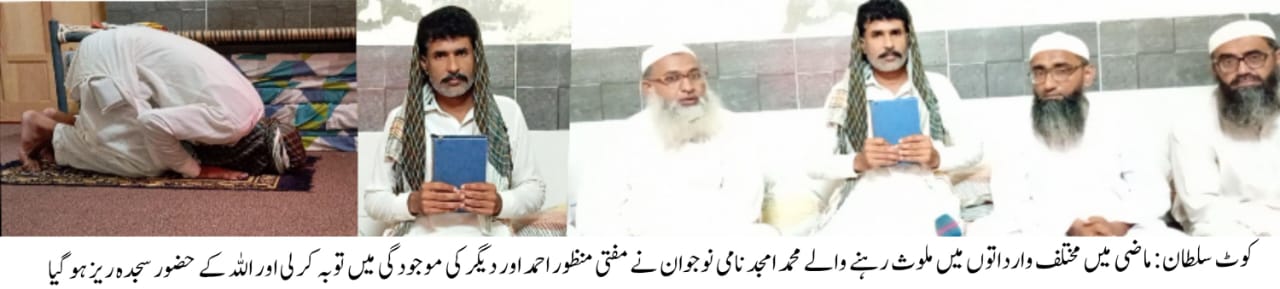 کوٹ سلطان (فہیم منجوٹھ سے )چوری اور ڈکیتی کی متعدد وارداتوں میں ملوث رہنے والے نوجوان امجد نے اپنے جرائم سے توبہ کرتے ہوئے نئی زندگی کا آغاز کرنے کا اعلان کر دیا۔تفصیلات کے مطابق محمد امجد ولد دوست محمد، سکنہ موضع علی دستی جو ماضی میں چوری، ڈکیتی کی وارداتوں میں ملوث رہا ہے نے عوامی سطح پر اپنے گناہوں سے توبہ کر لی ہے۔ امجد کا کہنا ہے کہ وہ جرائم کی دنیا سے مکمل طور پر توبہ تائب ہو چکا ہے اور آئندہ اپنی زندگی دین اور معاشرے کی خدمت کے لیے وقف کرے گا، امجد نے مدرسہ جامعیہ رحیمیہ تعلیم القرآن میں امام مسجد اور مقامی معززین کے سامنے اپنے جرائم کا اعتراف کیا اور اللہ تعالیٰ سے معافی مانگی۔ اس موقع پر محمد امجد نے قرآن پاک پر ہاتھ رکھ کر وعدہ کیا کہ وہ آئندہ کسی بھی غیر قانونی سرگرمی میں ملوث نہیں ہو گا۔امجد کا کہنا تھا کہ برے دوستوں کی صحبت اور معاشی پریشانیوں نے اسے غلط راستے پر لگا دیا تھا، تاہم اب وہ سب چھوڑ کر نیک راستے پر چلے گا۔ امجد نے نوجوانوں کو پیغام دیا کہ وقتی فائدے کے لیے جرم کی راہ اختیار نہ کریں، کیونکہ اس کا انجام صرف رسوائی اور پچھتاوا ہے۔علاقے کے معززین نے امجد کے اس فیصلے کو سراہا اور اسے ایک مثبت قدم قرار دیا۔ انہوں نے یقین دہانی کرائی کہ وہ امجد کو معاشرے میں دوبارہ باعزت مقام دلانے میں ہر ممکن تعاون فراہم کریں گے، یہ واقعہ ایک مثال ہے کہ انسان اگر چاہے تو اپنی زندگی کی سمت بدل سکتا ہے۔ امجد کی توبہ نہ صرف اس کے لیے بلکہ دیگر نوجوانوں کے لیے بھی سبق آموز ہے۔