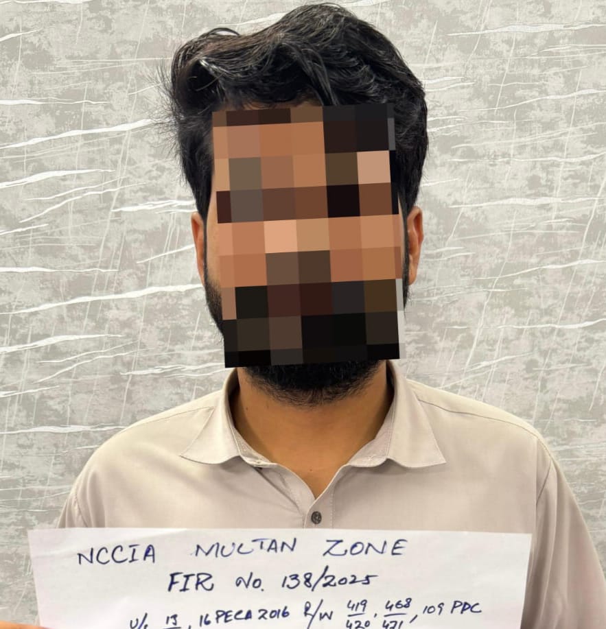 این سی سی آئی اے ملتان کے ایڈیشنل ڈائریکٹر عبدالغفار کے حکم پر سب انسپکٹر سعید احمد نے ملزم کو گرفتار کیا