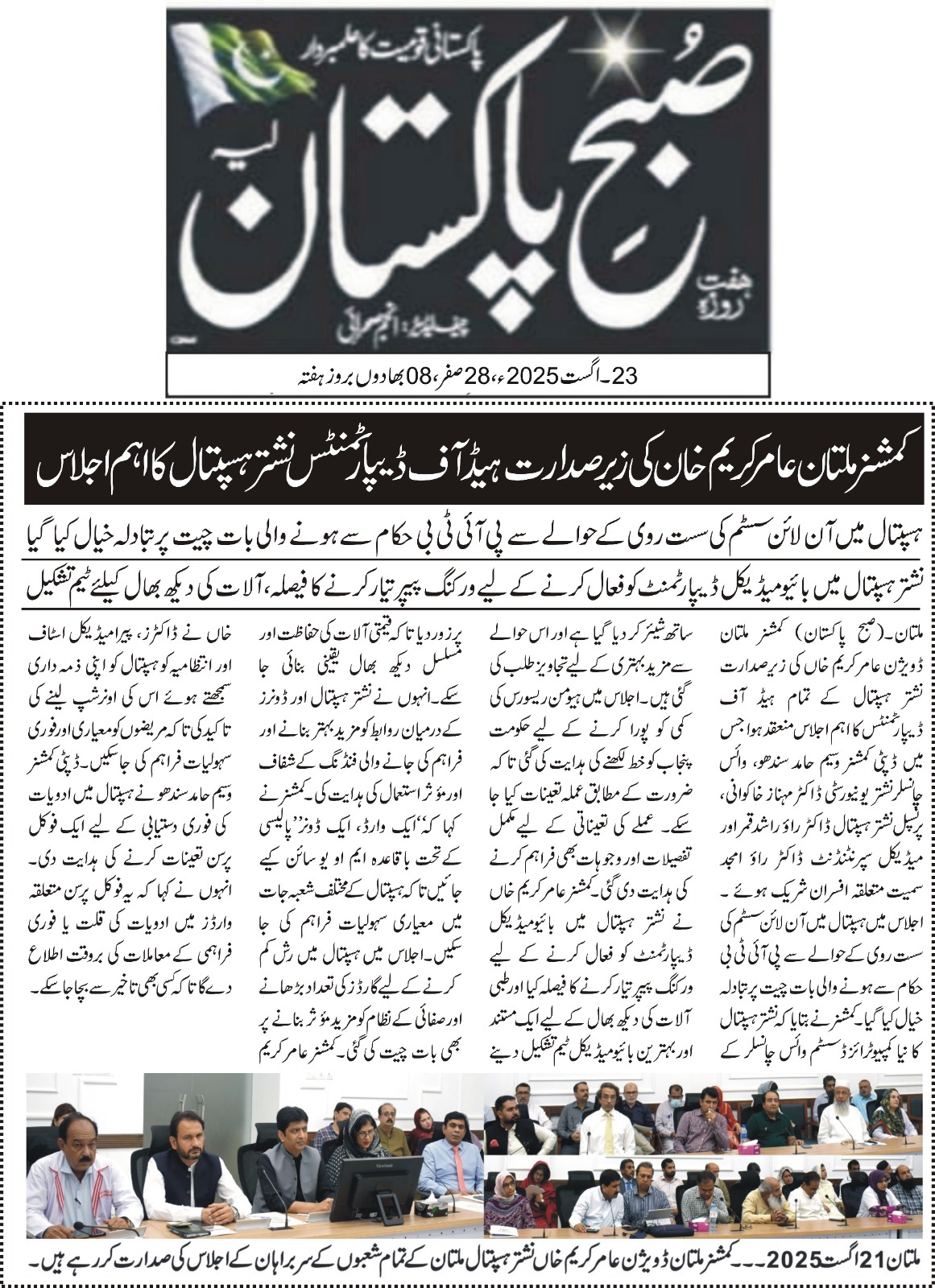 مشنرملتان عامرکریم خاں کی زیرصدارت نشتر ہسپتال کےتمام ہیڈ آف ڈیپارٹمنٹس کا اہم اجلاس