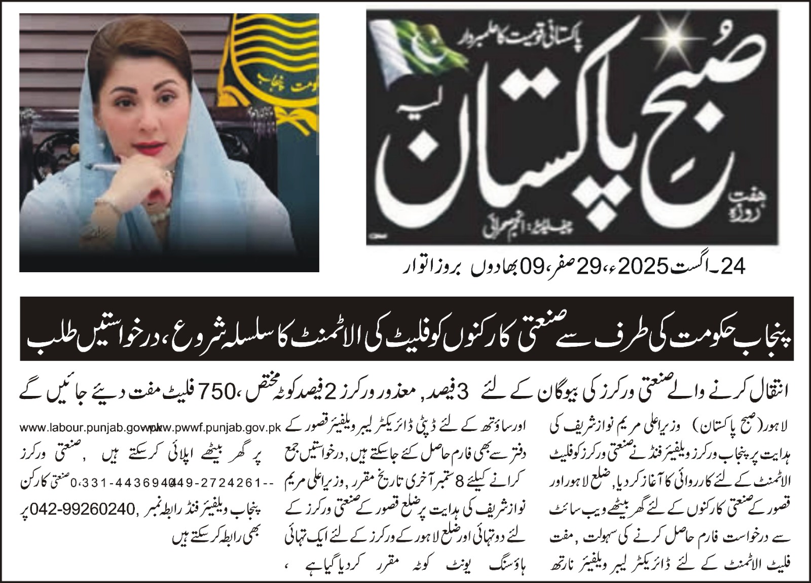 نجاب حکومت کی طرف سےصنعتی کارکنوں کو فلیٹ کی الاٹمنٹ کا سلسلہ شروع، درخواستیں طلب